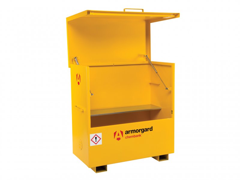 The high security lockable vault for the safe storage of chemicals. purpose-built for the safe storage of chemical substances, the Armorgard ChemBank™ conforms to all relevant hse requirements. The tough welded construction delivers maximum protection from thieves and the elements, while its distinctive bright yellow colour and signage make it easy to distinguish between fuel and chemical stores – a particular benefit for sites with multi-national workforces.