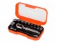The Bahco S34MC8H 1/4in Drive Socket & Bit Set, contains sockets made from high performance 50BV30 alloy steel with a micro matt finish. Conforms to ISO 1174 and DIN 3120. Supplied in a durable ABS plastic case. Contains: