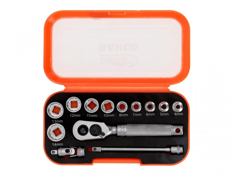 13 Piece Bahco SBS13MC10.5 1/4in Drive Socket Set in a compact case. Contains: