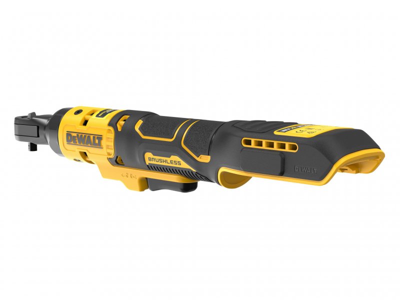 The DEWALT DCF514N XR Brushless 1/4in Ratchet features a variable speed trigger, easy-to-access forward/reverse switch, and trigger lock that helps prevent accidental activations. Ideal for harsh environments, this ratchet features a glass-filled nylon tool housing engineered to help resist damage from harsh chemicals and solvents. It also features a bright white LED that helps improve visibility around the workpiece.