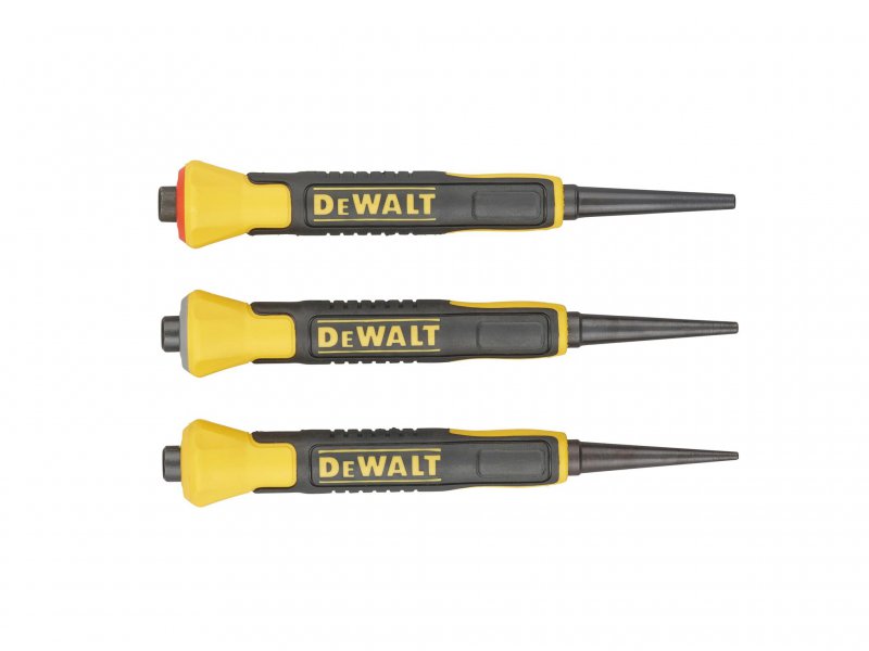DEWALT Bi-Material Nail Punches are comfortable and shock absorbent. Fitted with a bi-material grip that is flared to help protect your hand.