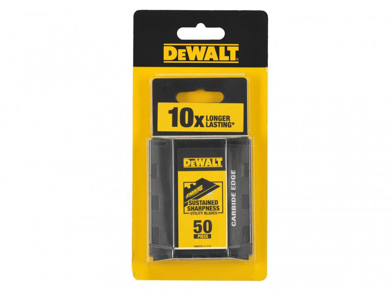 DEWALT Carbide Utility Blades stay 10X sharper than traditional utility blades. The steel body helps to prevent breaking of the blade. Will fit most utility knives, globally.