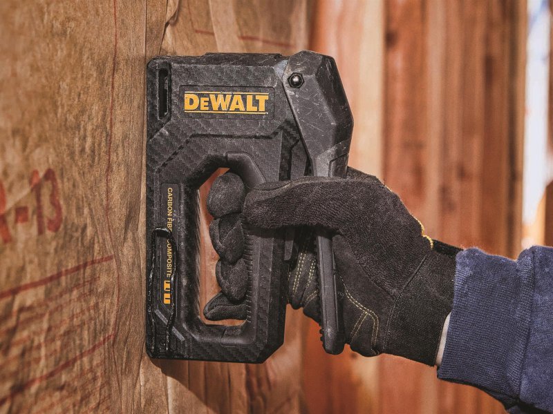 This DEWALT Staple Gun has a light-weight, carbon fibre composite housing which helps to reduce muscle fatigue . The quick and easy button load design and a low fastener indicator ensures the supply is ideal for repetitive jobs, like insulation and roofing or carpet underlayment. A reversible belt hook provides left or right-handed access.