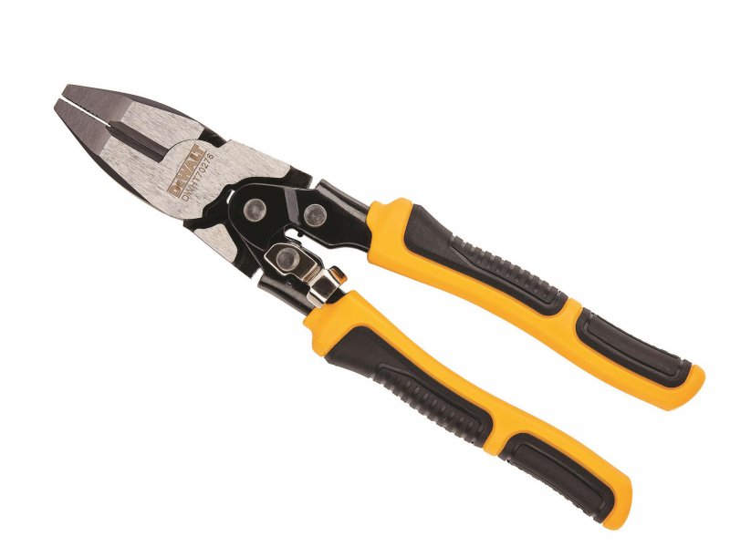 DEWALT Compound Action Combination Pliers with induction hardened cutting blades for 70% more cutting power over standard cutting pliers. Spring loaded for easy operation. The bi-material handles allow for a strong grip and added comfort. A locking mechanism allows for safe and easy storage.