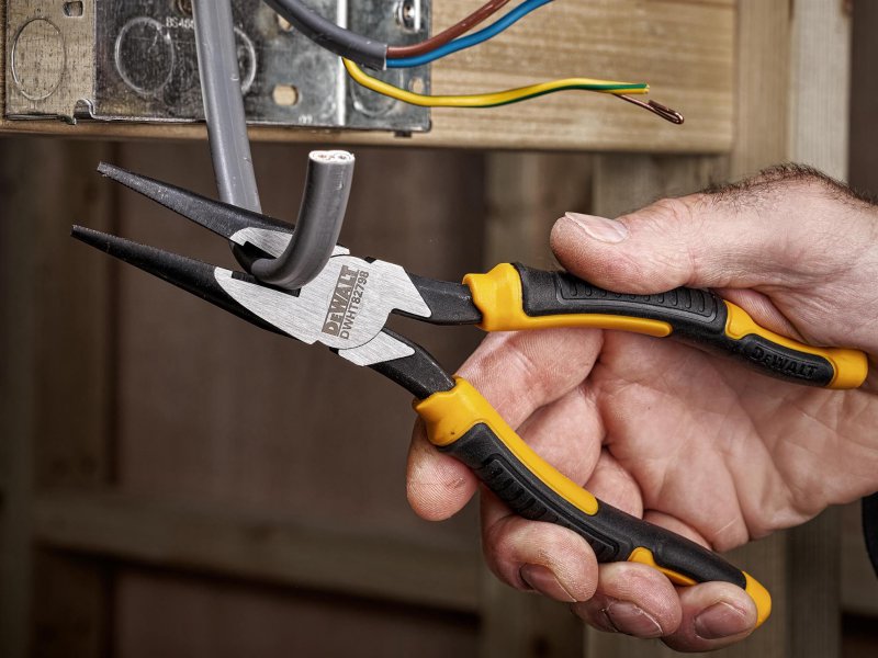 DEWALT Long Nose Pliers are made from durable chrome vanadium steel for strength and durability. They have a laser hardened cutting and gripping edge with a black oxidised finish to increase corrosion resistance. Fitted with ergonomic, two component handles, shaped to provide optimal shock absorption and control.