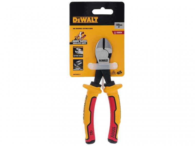 DEWALT VDE Diagonal Cutting Pliers feature a laser hardened cutting and gripping edge that provides maximum strength, but also reduces low hardness in damage prone areas on your fixings. They have a black oxide finish to increase corrosion resistance.
