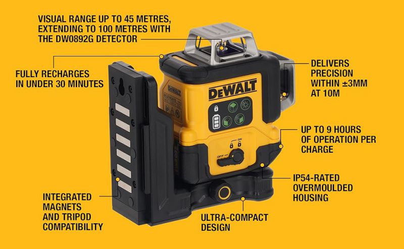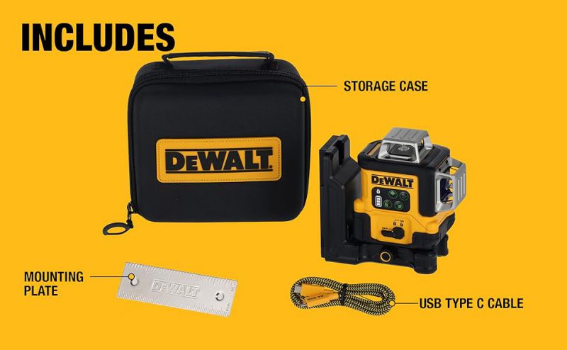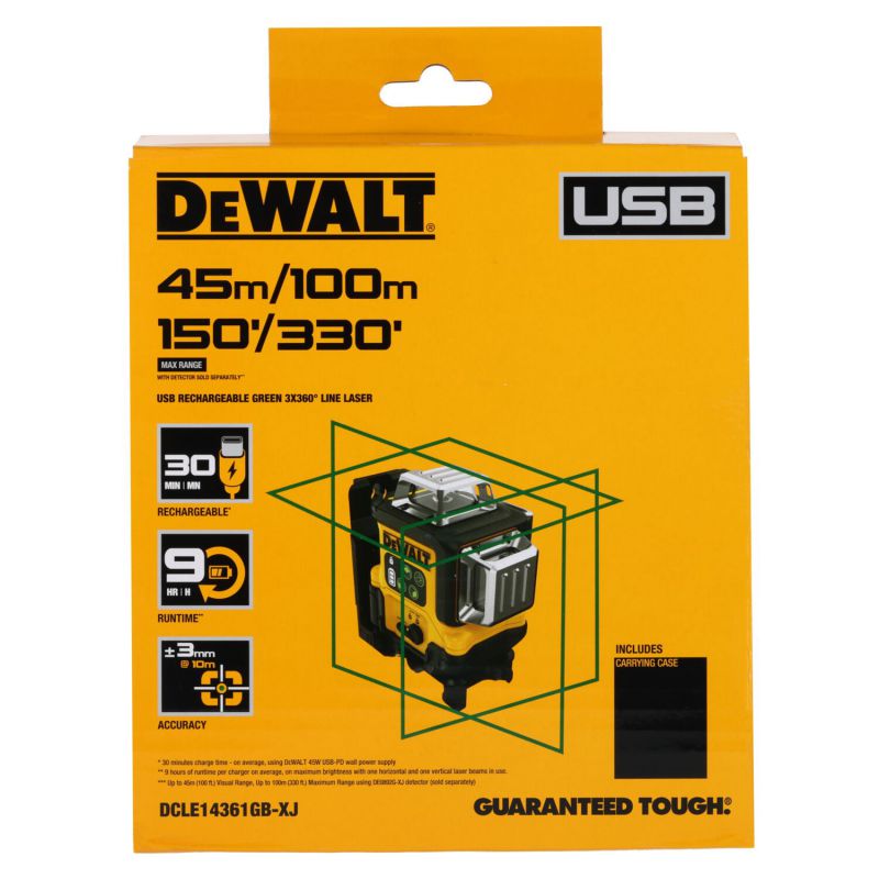 DeWalt DCLE14361GB-XJ USB-C Rechargeable 3 x 360° Green Beam Laser Level