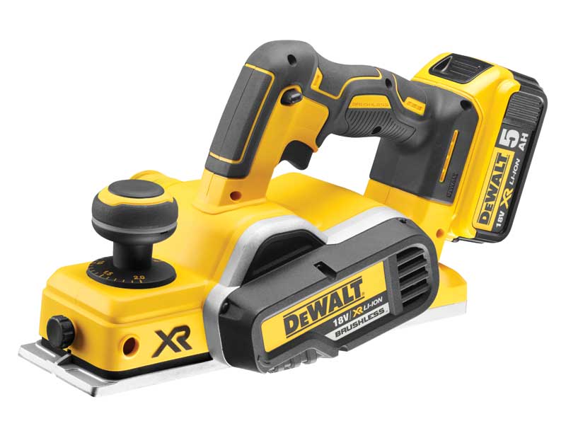 Dewalt DCP580P2 18V XR Cordless Brushless Planer Kit - 2 x 5.0Ah Li-ion, Charger, Case & Dust Bag