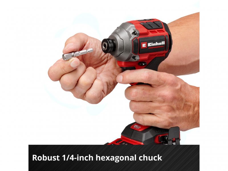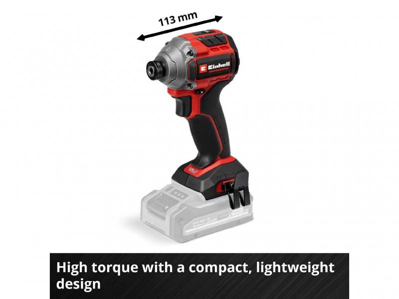 The Einhell TP-CI 18/250-C Li BL PROFESSIONAL Impact Driver is driven by an Einhell brushless motor. This brushless motor provides more power and longer running times than a conventional carbon brush motor. Once you register online, there is a 10-year warranty on the brushless motor. Compact, lightweight and yet powerful: This cordless impact wrench is designed to be around 30% more compact than similar impact wrenches. This makes it as flexible as possible and handy to use.