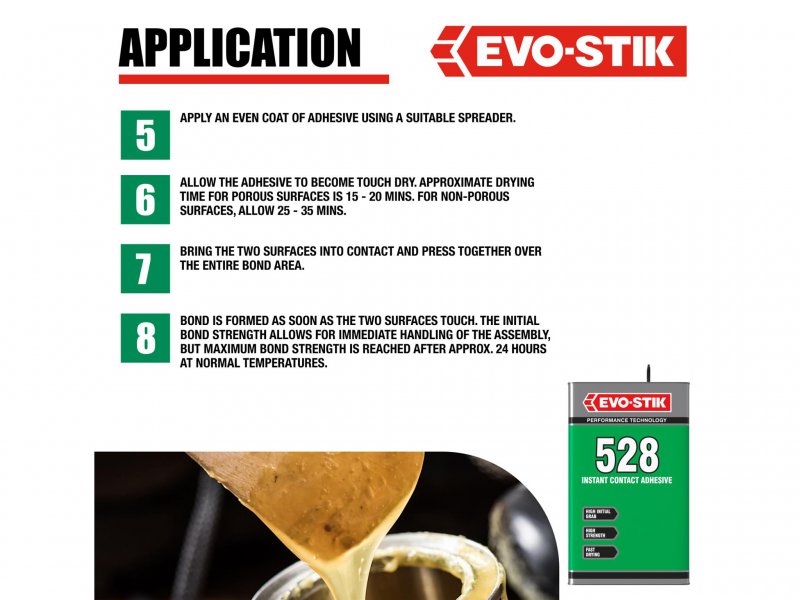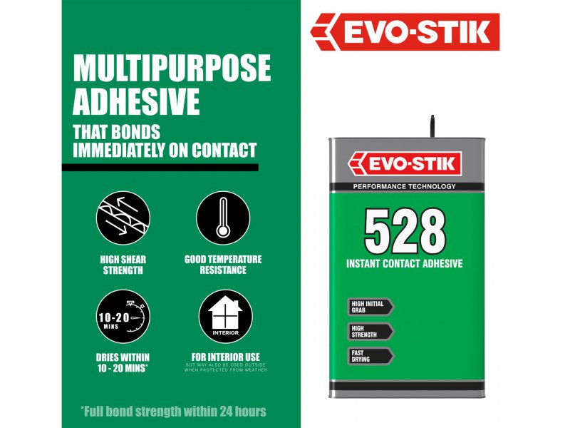 A multi-purpose adhesive which bonds immediately on contact. It is temperature resistant with a high shear strength and an excellent final bond strength.