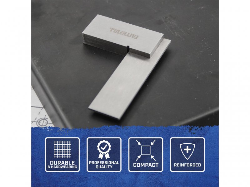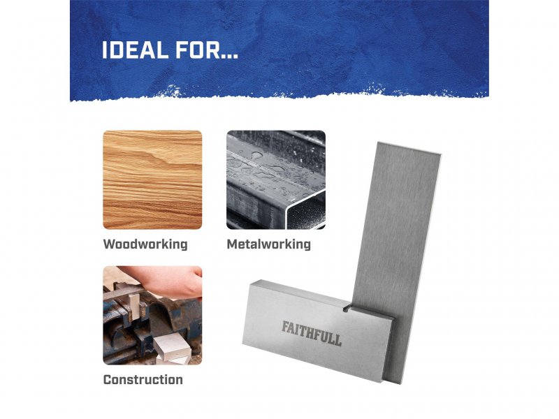 The Faithfull Engineers Square has been carefully crafted from high quality tool steel, these squares are accurate to BS939 Grade B standard. The stock and blade are precision ground to ensure straightness and accuracy, and the spring steel blade is hardened and tempered for increased durability.