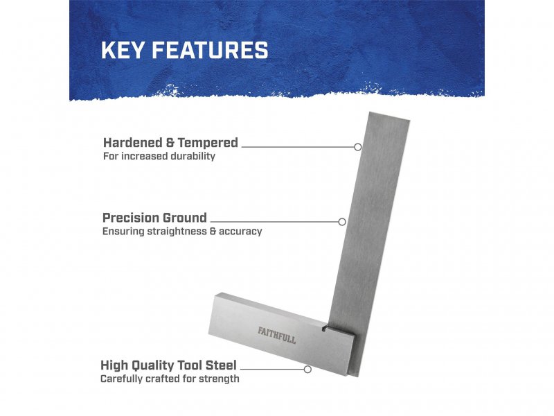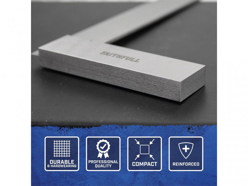 The Faithfull Engineers Square has been carefully crafted from high quality tool steel, these squares are accurate to BS939 Grade B standard. The stock and blade are precision ground to ensure straightness and accuracy, and the spring steel blade is hardened and tempered for increased durability.