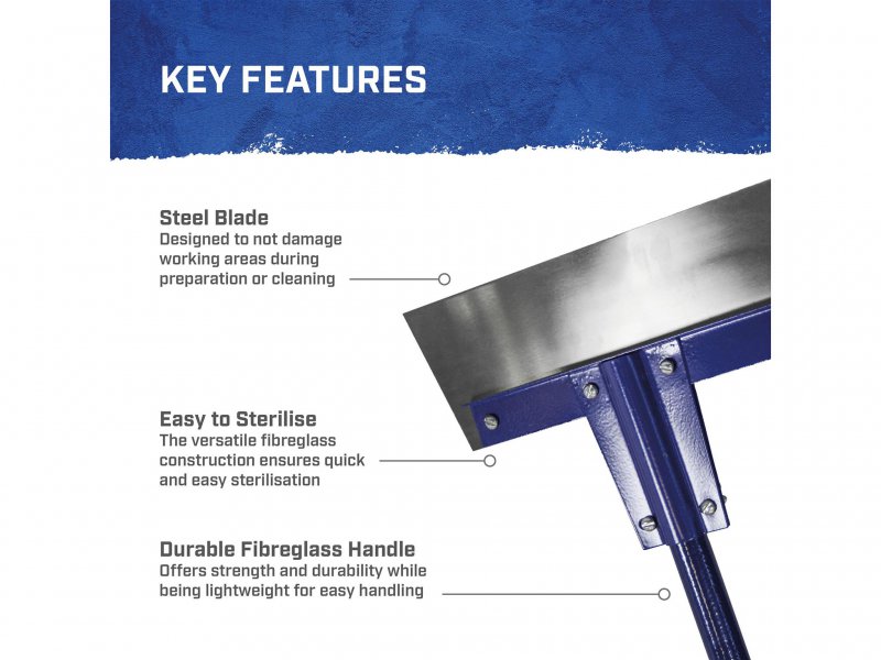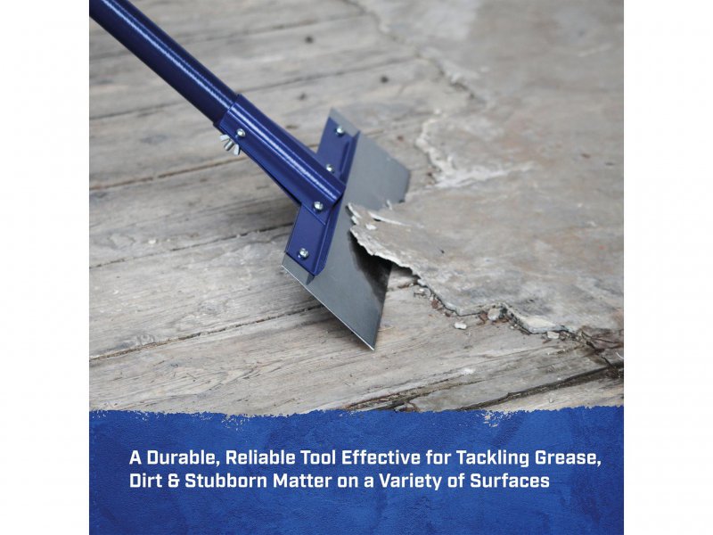 Used for removing grease and dirt from workshop floors, preparation areas and shopping arcades. The blade is designed not to damage tiled flooring or laminates.Fitted with Heavy-Duty Fibreglass handle.