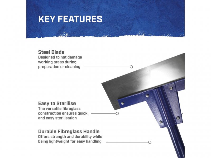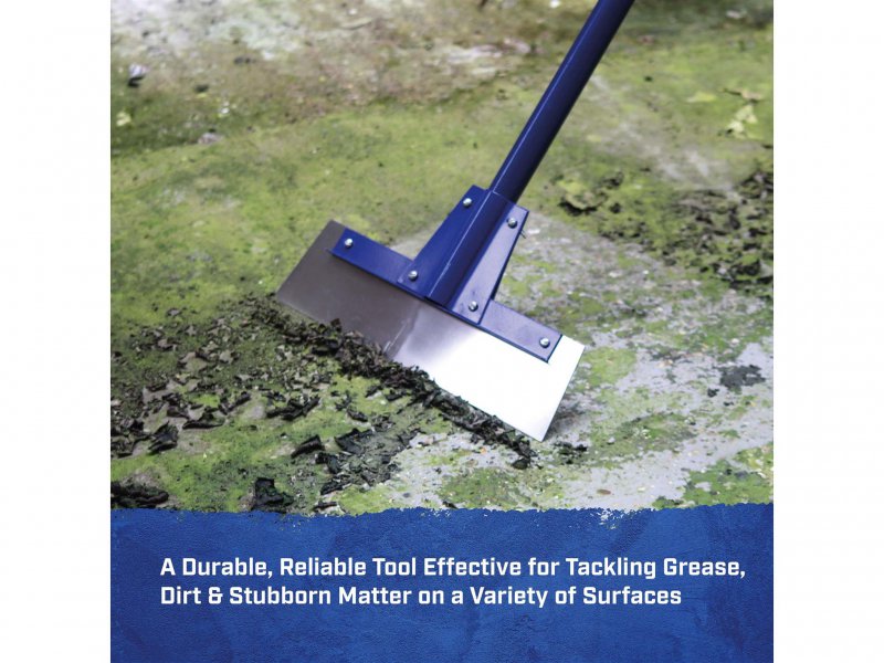 Used for removing grease and dirt from workshop floors, preparation areas and shopping arcades. The blade is designed not to damage tiled flooring or laminates.Fitted with Heavy-Duty Fibreglass handle.