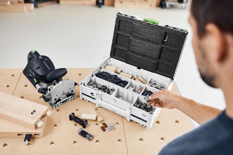 - The corner and flat connector system for the DOMINO XL DF 700 joining machine enables stable connections that can be separated again at a material thickness of 30 mm or higher