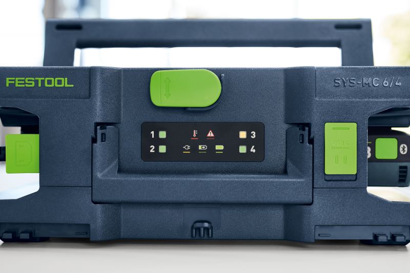 A charger for your batteries - clear, mobile and organised. With the SYS-MC 6/4, you can keep an eye on your batteries and know which ones are already charged. At the same time, you can transport up to four batteries in the multi-charger with one of the two integrated carrying handles. This keeps you perfectly organised and optimises your work processes on the construction site. Charge in parallel, save time