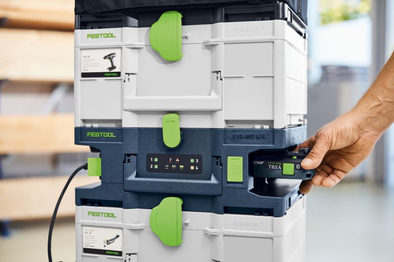 One socket - quadruple charging. The multi-charger takes your battery management to the next level. You can charge up to four batteries at the same time, save time and socket outlets and have everything centrally organised and in view. Your batteries are accessible from all sides - for quick access and maximum ease of use. Thanks to complete Systainer integration, your workplace remains tidy - whether in the workshop, in the vehicle or on the construction site. Access from all sides: Your batteries are easily accessible from all sides at all times, even with stacked Systainers.