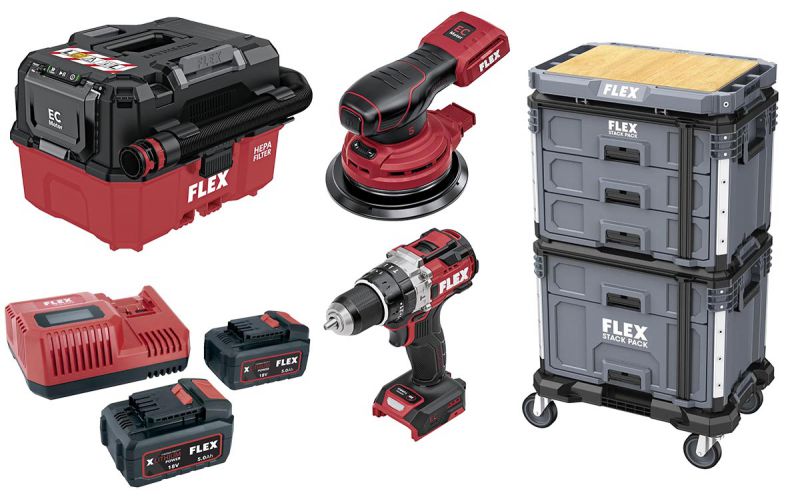 - FLEX battery system: suitable for all FLEX 18 V battery packs. Delivery does not include battery and charger
