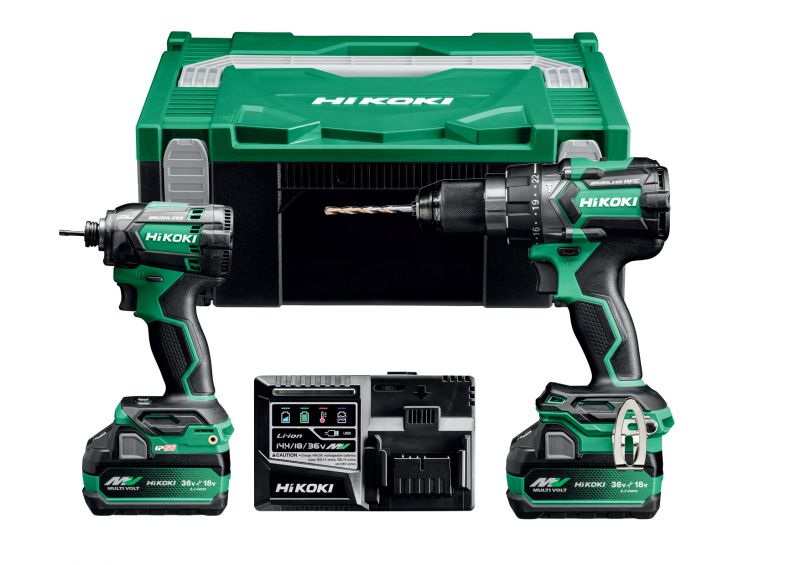 Hikoki KC18DCJAZ 18V 2 Piece Brushless Power Tool Kit, 2x 5.0Ah 18V MV Batteries, Charger & Case