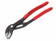The Knipex 87 26 Series VDE Cobra® Water Pump Pliers are fitted with multi-component grips, VDE tested up to 10,000V and safe for work up to 1,000V. They conform to DIN EN / IEC 60900. They are adjusted by shifting one jaw directly on to the workpiece and can then be opened at the touch of a button off the workpiece. They have a fine adjustment for optimum adaptation to different sizes of workpieces and a comfortable handle width.