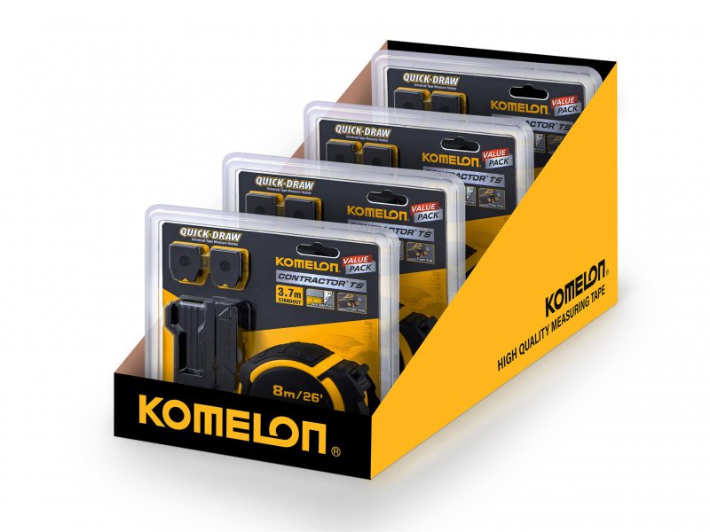The New & Exclusive XMS Contractors Tape with FREE Belt Clip, 8m (26ft), made by Komelon a well thought out tape with a 32mm wide nylon coated blade.