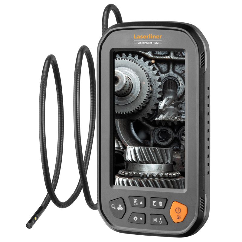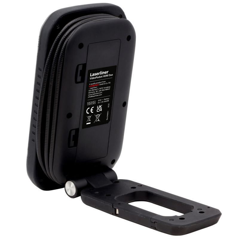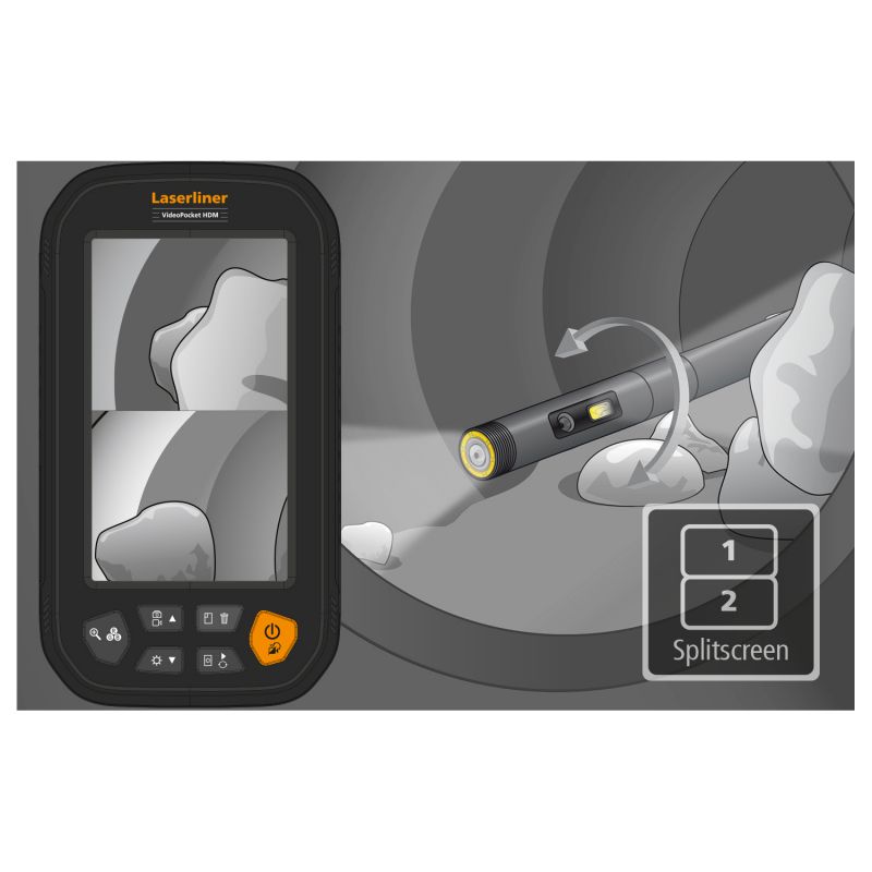 This high-resolution and compact video inspection system allows detailed visual inspection of hard-to-reach locations such as pipework, suspended ceilings and vehicles. Seven powerful LEDs on the waterproof camera unit, adjustable in ten settings, ensure effective illumination during use. The front and side camera enable a flexible view of the inspection area on the large colour display, optionally individually o simultaneously in a clear split screen view. Details can be clearly captured using the zoom function. The compare image function allows the user to see the differences between the live image and a saved reference image.