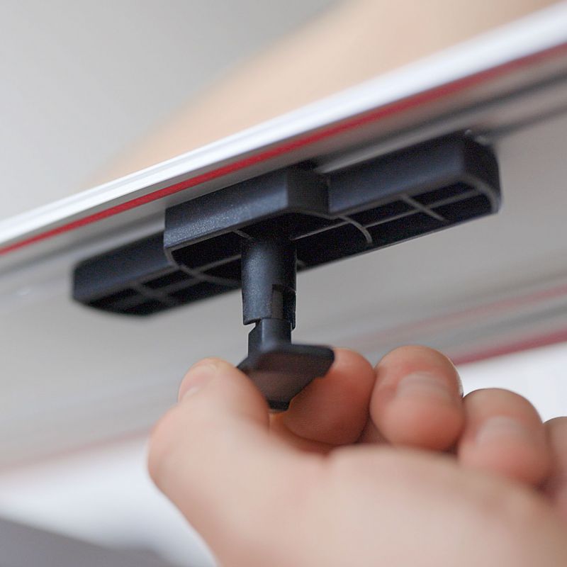 The rubber lip provides a guide edge as well as tear protection. For a perfect result you should pre-cut the rubber lip with your machine before using it on the workpiece. The upper side of the guide rail has a special coating which helps your machines moving smoothly on the guide rail and helps you to concentrate on your work and not on pushing the machine through the workpiece. Simply easy. The plug-in end profile supplied with the machine prevents cables and suction hoses becoming caught. The width of the guide rail matches entirely the width of the machines gliding on top of the guide rail – another factor ensuring a perfect cutting result.