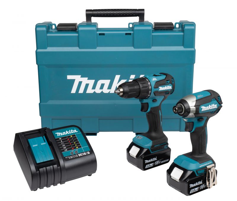 Makita DLX2537ST 18V Twin Kit DHP490 Combi Drill and DTD153 Impact Driver, 2 x 5.0Ah LXT Li-Ion batteries, DC18SD charge