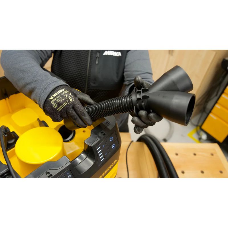 The Mirka Y-Branch is a dedicated accessory for the Mirka DEXOS Dust Extractors, designed specifically for non-M classified applications. It allows efficient dust extraction from two tools simultaneously, boosting productivity in situations where dual-tool operation is required without compromising suction performance.