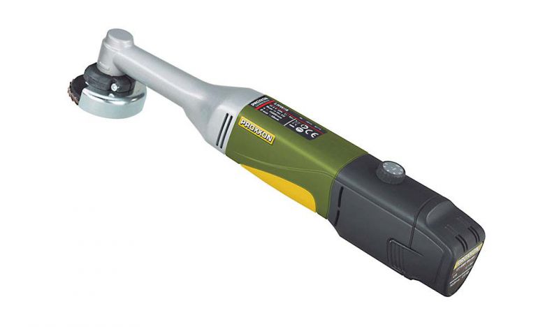 You can use the LHW/A for work on steel, non-ferrous metal, glass, ceramics, wood and plastic. It can cut, texture, sand or grind. The variable electronic speed control still has high torque, even in the lower speed range. It takes 50mm diameter discs. The extended neck allows easy access into narrower spaces. This professional quality battery-powered MICROMOT tool combines the features of its mains equivalent with the convenience of a cordless tool. The 10.8V, 2.6Ah lithium-ion battery gives a performance comparable to its mains-powered counterpart. The main bearings and gears sit in a die-cast aluminium head ensuring a long, trouble-free working life. The glass fibre reinforced POLYAMIDE main body houses a special balanced, powerful, quiet and long lasting DC motor. The soft component body grip offers comfort and greater control. The flat end cap on the battery enables the tool to stand upright when not in use. Overall length 320mm. Complete with a corundum-grinding disc (grit 60), a fan sander (grit 100) and a reinforced cutting disc, lithium-ion battery (10.8 V), fast charger and virtually unbreakable polypropylene case.