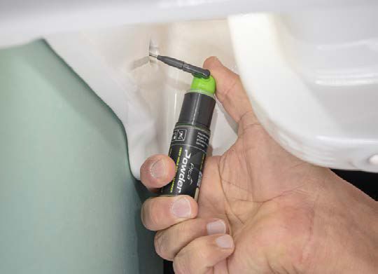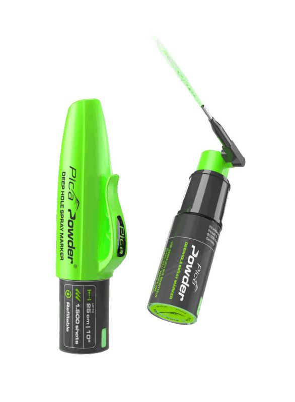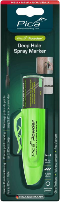 Deep Hole Spray Marker for contactless marking with green-fluorescent chalk powder