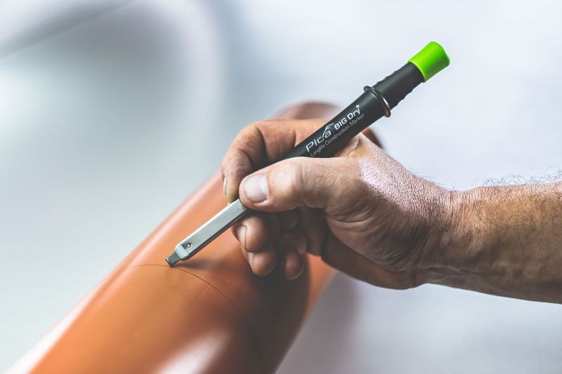 The carpenter's pencil for professionals. A hard-wearing and robust marker that can withstand even the toughest demands. Its 2 x 5 mm thick leads are ideal for precise edge guidance when marking. With integrated lead sharpener for ready-to-hand precision. Equipped with a unique high-tech push mechanism for automatic lead feed at the push of a button.