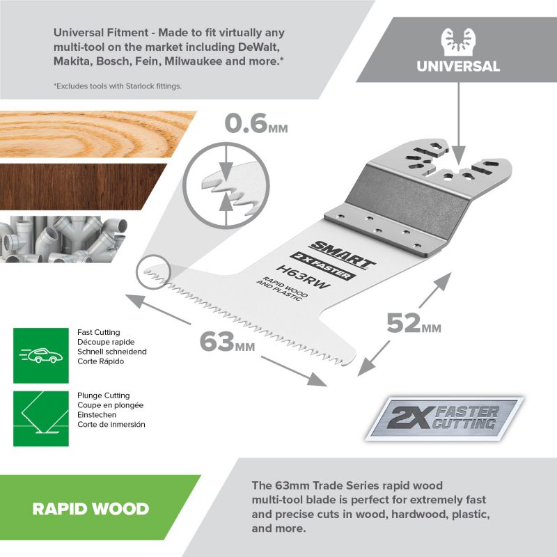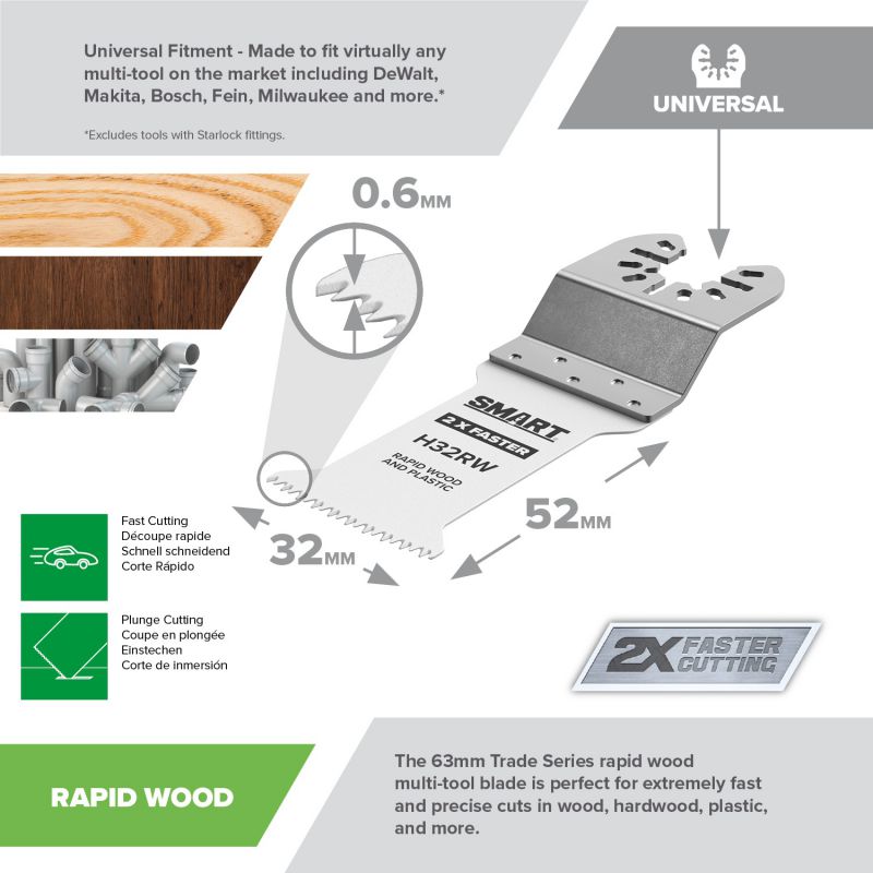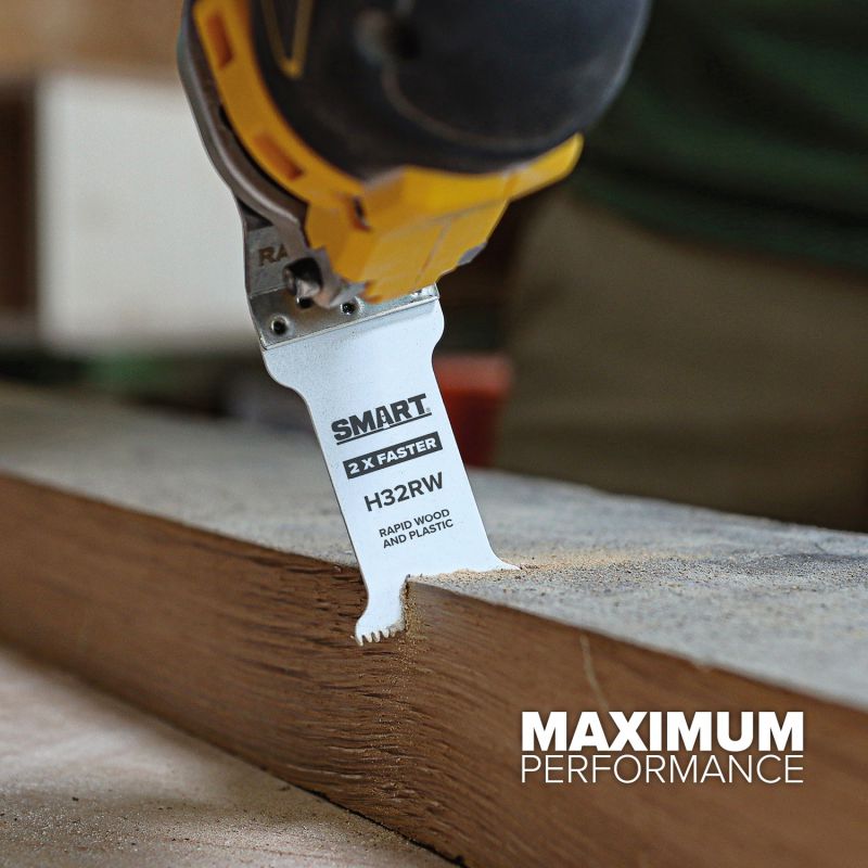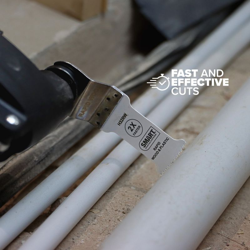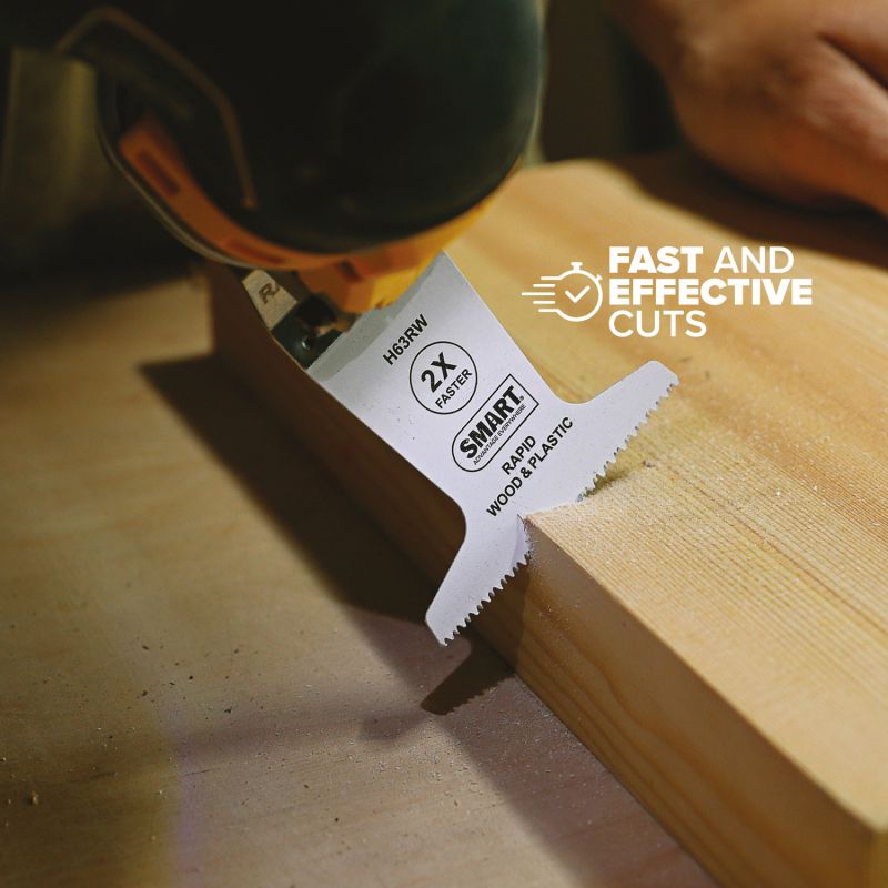 A two-piece Trade Series rapid wood multi-tool blade set perfect for fast cuts in wood, hardwood and plastic.