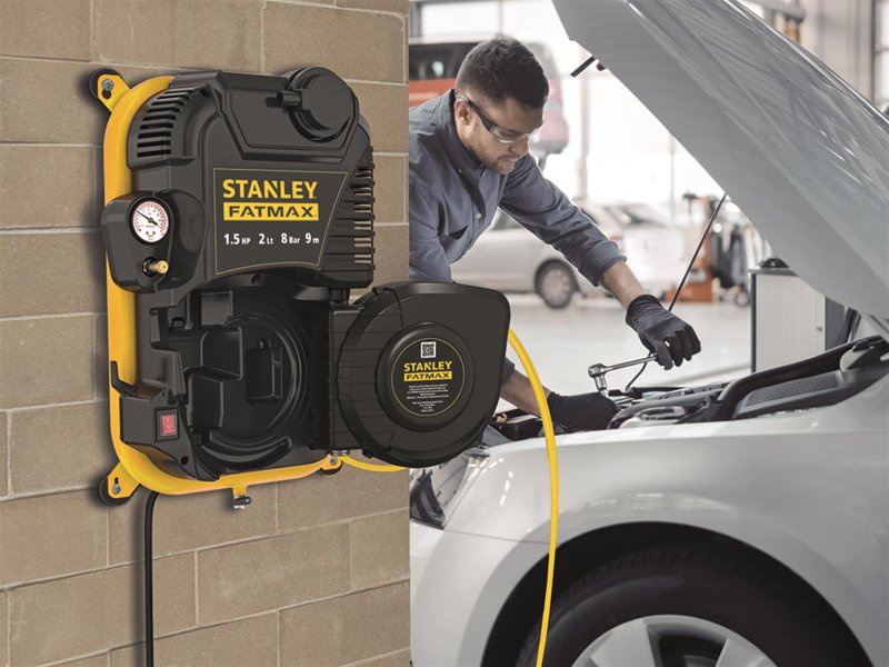 The Stanley® FMXCMD152WE FatMax® Wall Mounted Air Hose has a compact and sturdy design, plastic shrouds protect the internal mechanical parts. A built-in hose reel (9m) keeps your workspace neat and clean without the need to move the compressor in the work area. Utilises oilless technology, maintenance free and environmental friendly.