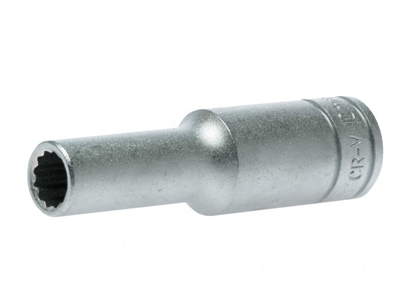 A professional bi-hexagon 1/2in square drive deep socket produced in accordance with ISO 900 and AS954 specifications for increased torque and reduced risk of rounding fasteners. Manufactured from chrome vanadium steel with a satin finish.