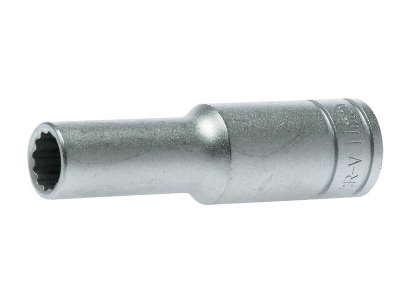 A professional bi-hexagon 1/2in square drive deep socket produced in accordance with ISO 900 and AS954 specifications for increased torque and reduced risk of rounding fasteners. Manufactured from chrome vanadium steel with a satin finish.