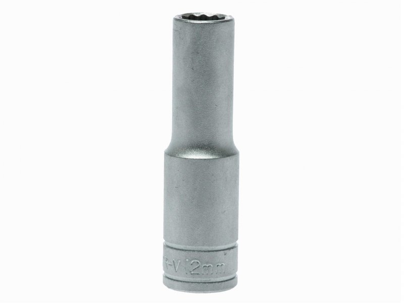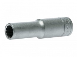 A professional bi-hexagon 1/2in square drive deep socket produced in accordance with ISO 900 and AS954 specifications for increased torque and reduced risk of rounding fasteners. Manufactured from chrome vanadium steel with a satin finish.