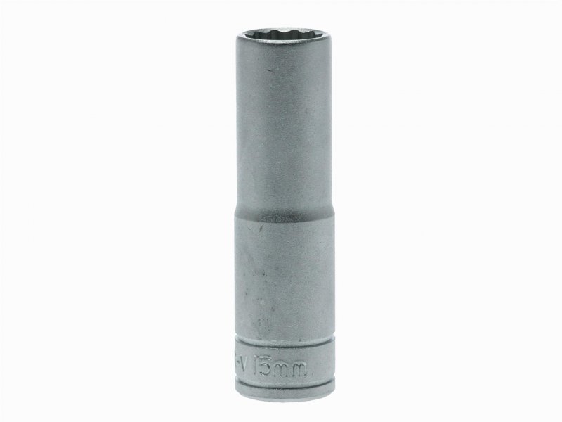A professional bi-hexagon 1/2in square drive deep socket produced in accordance with ISO 900 and AS954 specifications for increased torque and reduced risk of rounding fasteners. Manufactured from chrome vanadium steel with a satin finish.