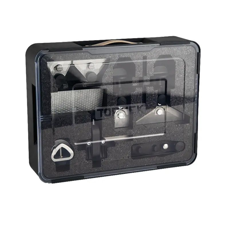 The case is made of a durable material and has a sliding lid that keeps everything in place. The storage tray is made of EPP, a material that's highly durable and perfect for storing your jigs for many years to come. The TC-800 Tormek Case is stackable, so if you have another case, they can be stacked perfectly on top of each other.