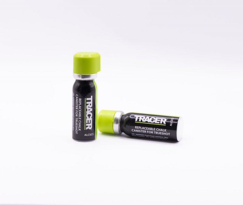 The TRACER Trueshot Replacement Canister 2-Pack offers fast, mess-free refill of the TRACER Trueshot Chalk Marker. Each refill provides up to 250 high-visibility green spray marks, delivering crisp, clean results without splatter. Each Trueshot canister features a protective anti-roll lid and sealed design for durability on site.