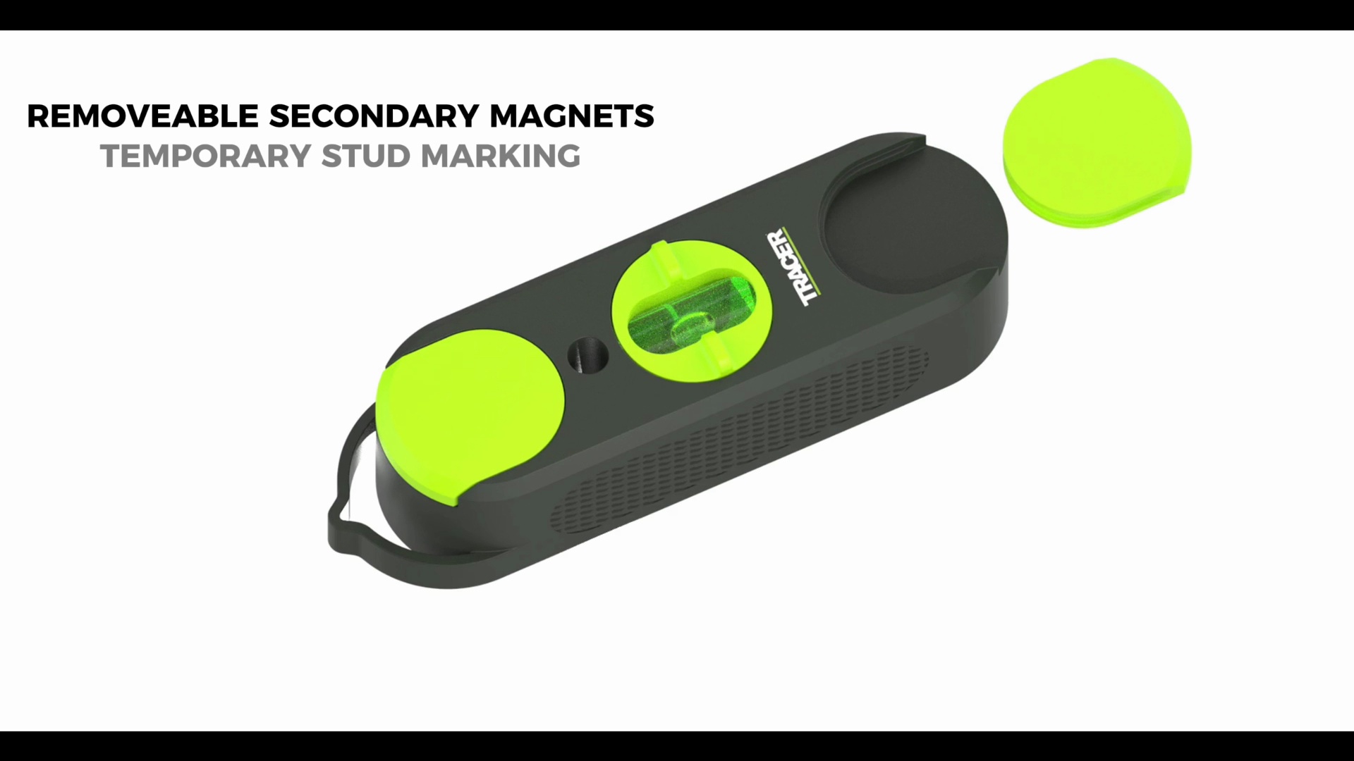 Multifunction magnetic stud finder with removable magnets to locate and mark up to three studs. Inbuilt rotating level and compatibility with TRACER 2.8mm deep hole pencil.