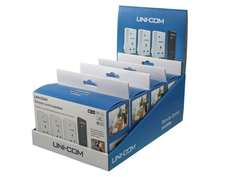 The XMS Remote Control Sockets from Uni-Com enable you to effortlessly turn on and off household appliances at a click of a button on the remote control. Ideal for those hard to reach sockets where you may have televisions, lamps, Christmas tree lights, electric fans / heaters and many other household appliances plugged in. Few Get Kitted Out for Christmas products are more timely.