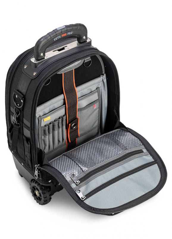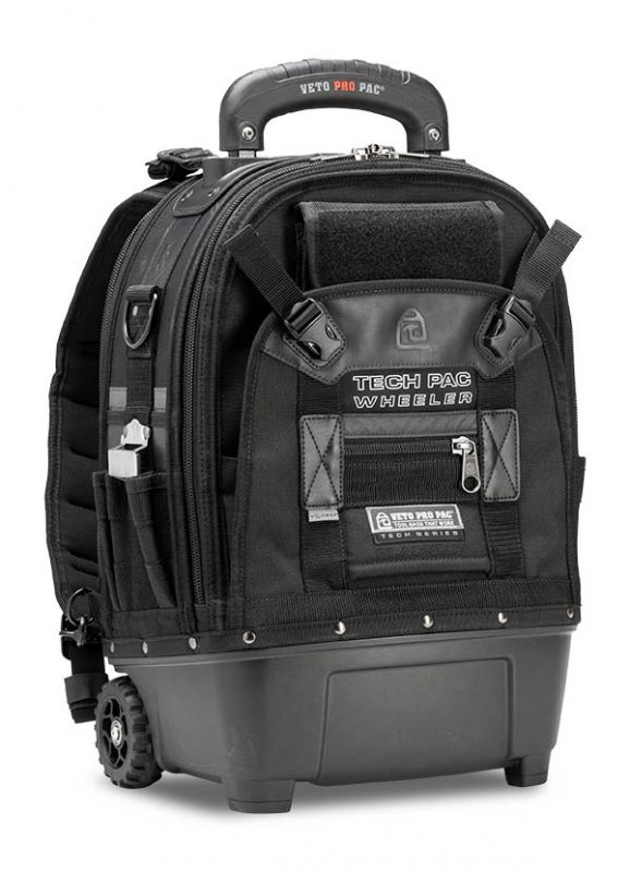 The TECH PAC WHEELER is a rolling version of the best-selling TECH PAC backpack tool bag. Featuring additional volume capacity & Veto Pro Pac’s proprietary V-SWAP™ system that offers the back meter panel to be swapped out with optional laptop or bulk storage panels (both sold separately), the TECH PAC WHEELER provides a versatile tool transport system functioning as both a wheeled and backpack tool bag.