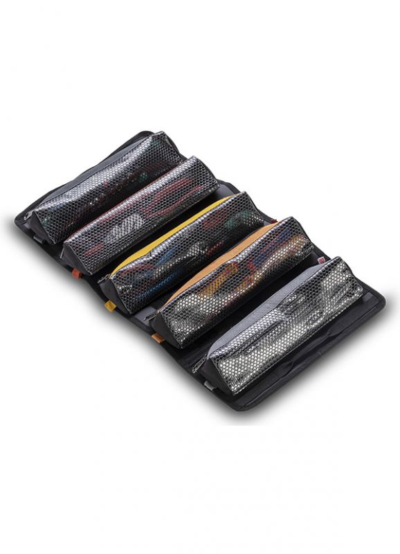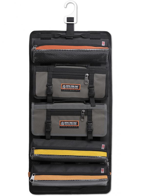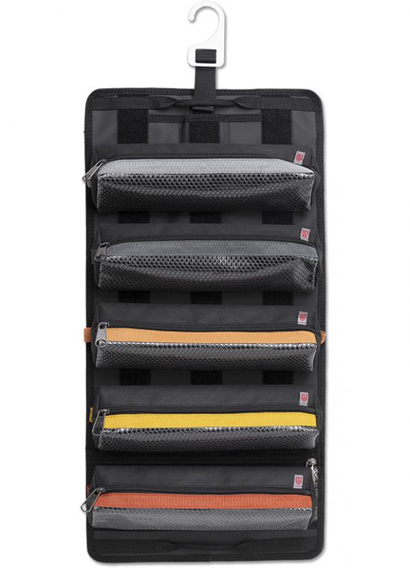The TR-LC is a highly functional, large modular tool roll designed for job sites and roadside repairs. It features a mountable design with a hanging hook to keep it off the ground and out of the mud. This large tool roll is easily carried with an ergonomic grip handle and a shoulder strap when rolled up, and two secondary handles for quick transport when unrolled. The TR-LC includes five removable storage pouches and rolls: three multi-colored large bulk storage pouches (“RP-LCs”) designed to contain items while hanging; a wrench roll (“WR-LC”) for a full wrench set, and a socket roll (“SR-LC”) for a full socket set. Both the WR-LC and SR-LC also function as standalone rolls with external zippered pockets and carrying handles. The RP-LCs, WR-LC, and SR-LC utilize heavy duty Velcro to ensure a secure attachment and easy detachment on the inside of the TR-LC so that you can grab them and go as you need. Additional WR-LCs, SR-LCs, and a 2-Pac of RP-LCs (shown as RP-LC (2 PAC) and offering different colors (dark gray and light gray) than the RP-LCs that come with the TR-LC) can be purchased separately to customize the layout.