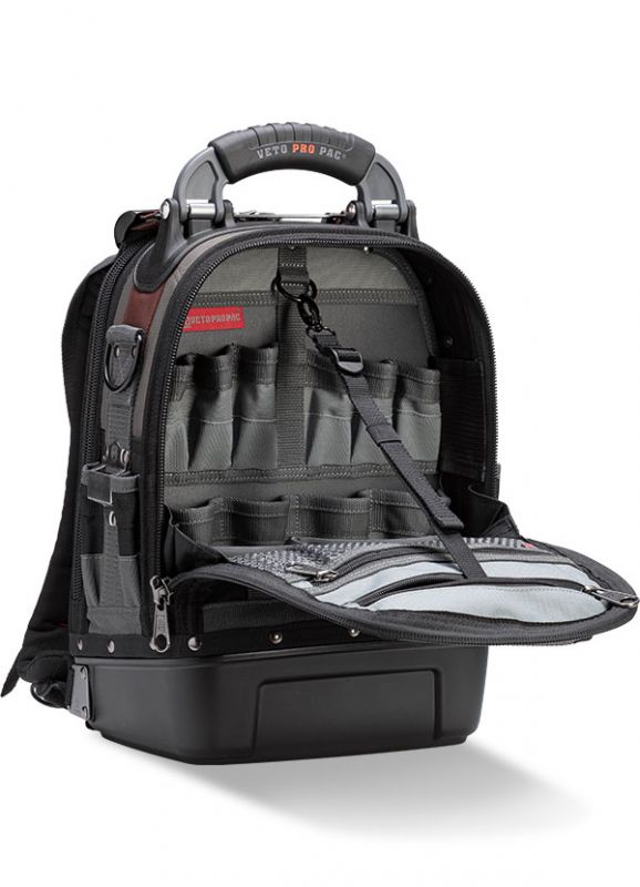 The Tech Pac MC is a compact tool backpack tool bag designed for Techs that need to “hands-free” carry a minimum amount of tools and test meters for service calls and minor installs. This is perfect for mobile tool storage.