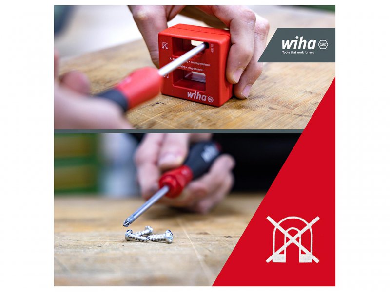 The Wiha Magnetiser/Demagnetiser for magnetising and demagnetising blades and blade-like tools made of steel. The tool's strong permanent magnet has an extremely long service life and is also suitable for magnetising tweezers and other steel tools.